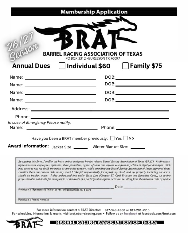 BRAT loves vendors! If you need vendor information please contact Tammi 817-343-4368.Vendor Sponsor Application